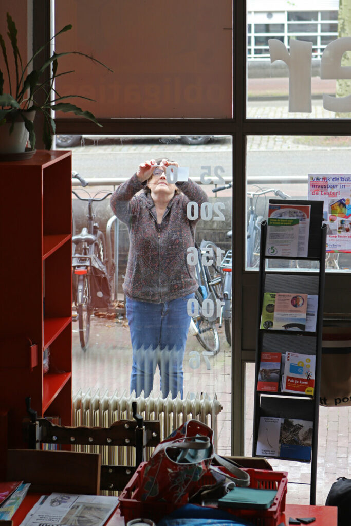 Op het raam van de Eester kun je via de themometer bijhouden hoeveel de stand is. Met andere woorden; hoeveel Eester-obligaties er al gekocht zijn. Spannend!